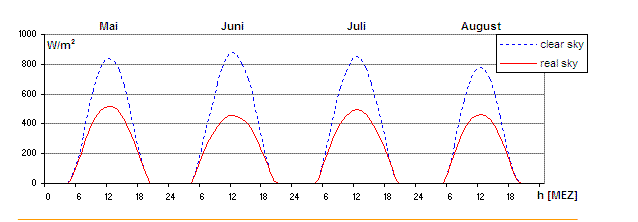 clear sky: Mittlerer monatlicher Tagesgang der Globalstrahlung