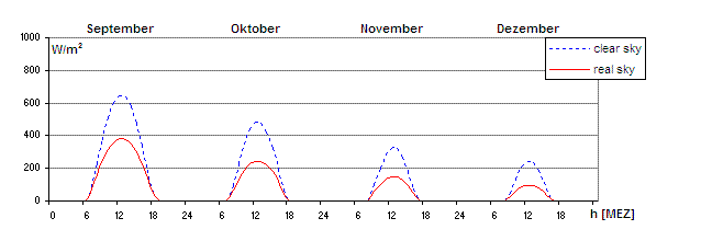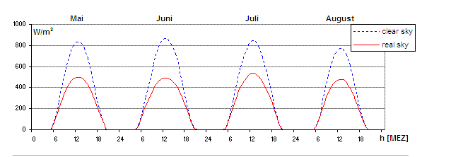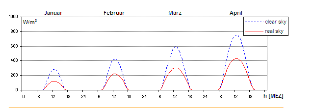 clear sky: Mittlerer monatlicher Tagesgang der Globalstrahlung